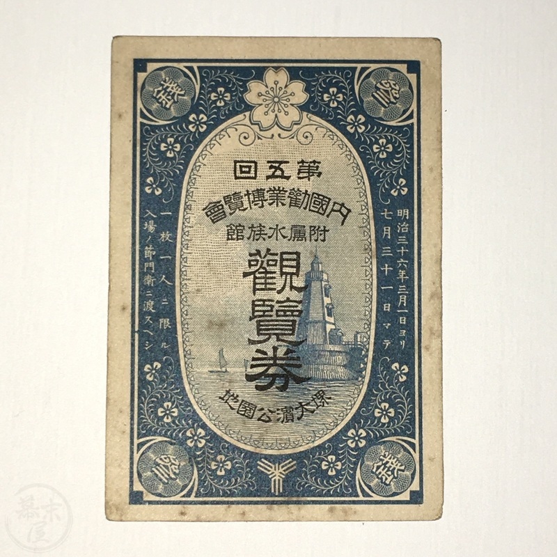 Two Tickets to the 1903 Osaka Industrial Exhibition for the aquarium in Sakai and Palais De L'Optique