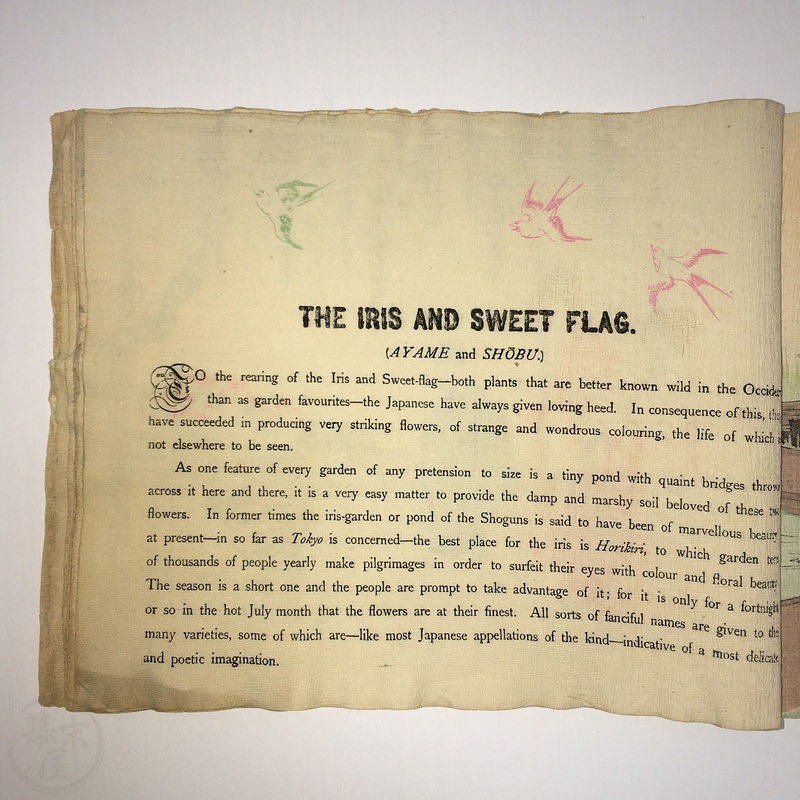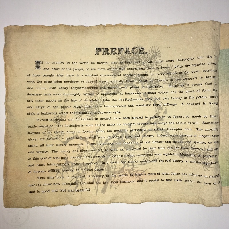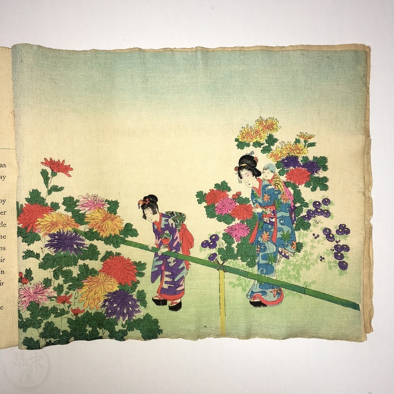 [Japan] Also the largest crepe paper book published by Akiyama. Flora Sweet was a made-up name created probably by Akiyama. Seldom appears on the market. A smaller edition was also published (see final picture which shows the smaller version next to this larger edition). Such a lovely book. Printed by Sakai Torakichi.
