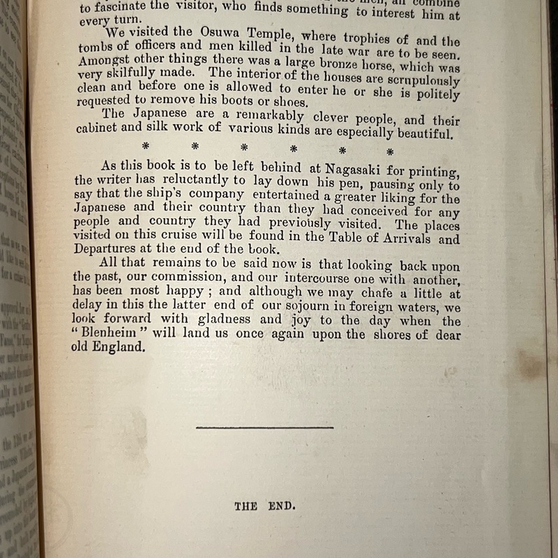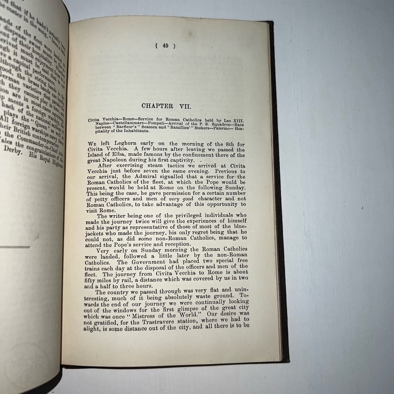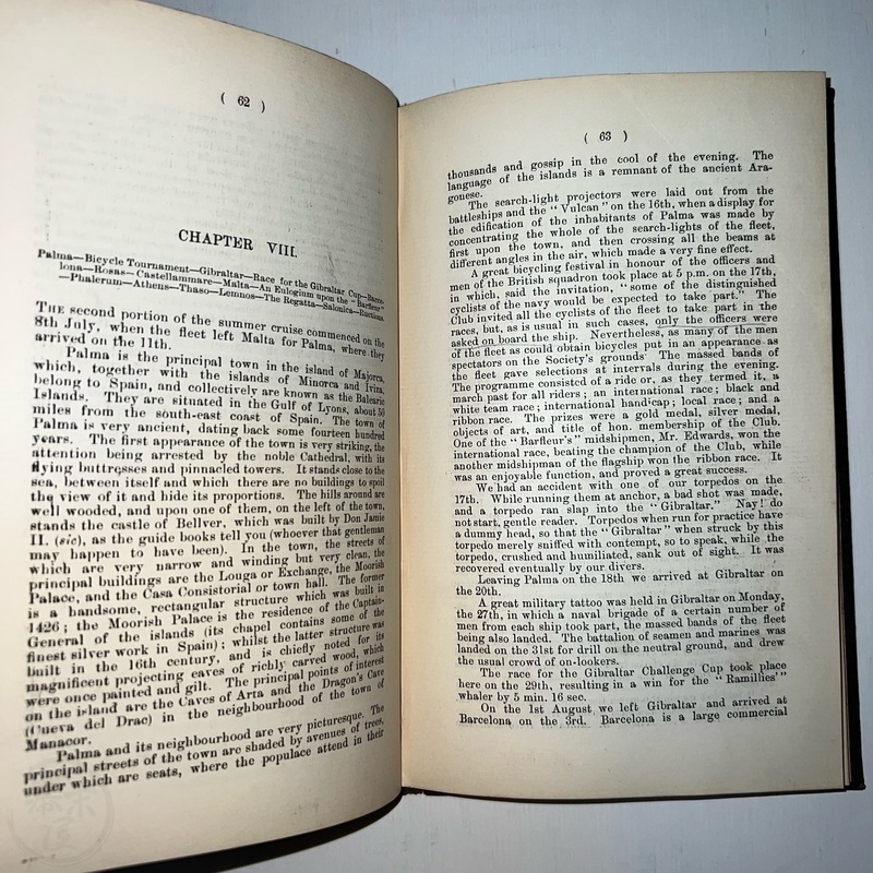 バルフルール軍艦は地中海から1898年にチャイナステーションに任命されました。パーマー氏は序文で、他の2人の船員と一緒に本を書いていると思っていたと述べていますが、それは彼だけでした。また、彼は非常に初等教育しか受けていなかったので、文法上の誤りを許すように読者に求めています。実際、この本は非常に読みやすく、興味深いものです。後部のユーモラスな折り畳み地図は、発行されたとおりに存在します。