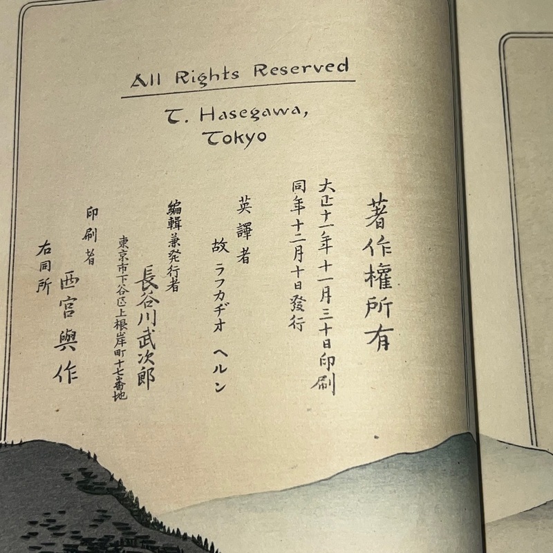 東京。長谷川武次郎(西宮與作印刷)。大正11年刊。