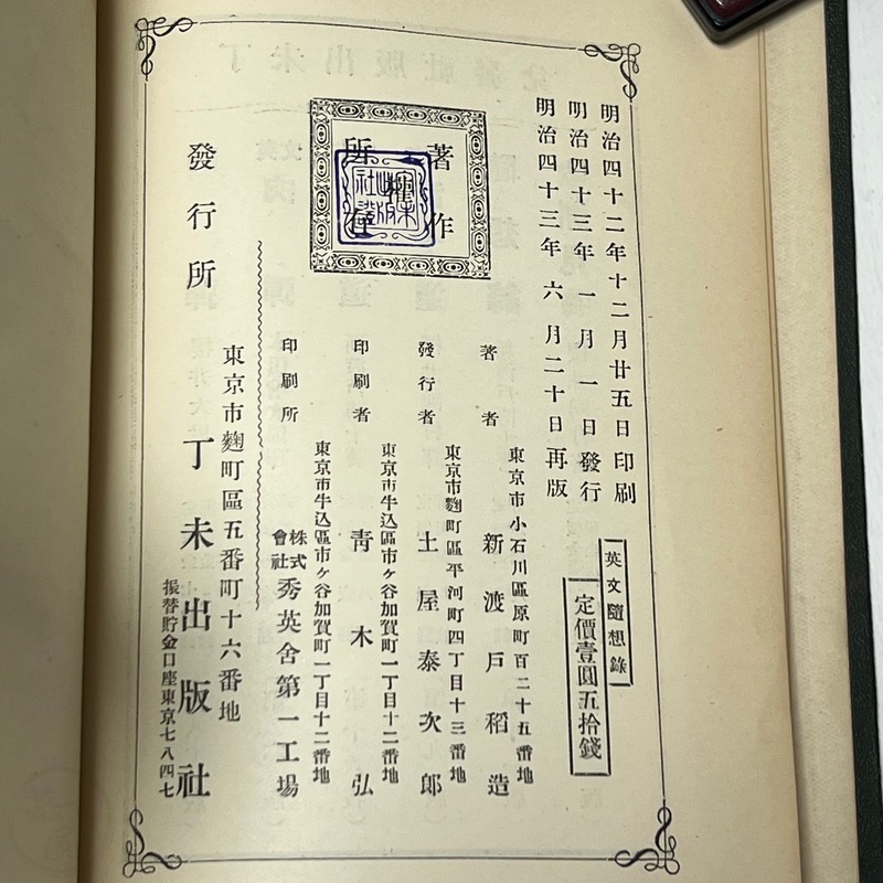 英文隨想錄 新渡戸稲造 サイン入り