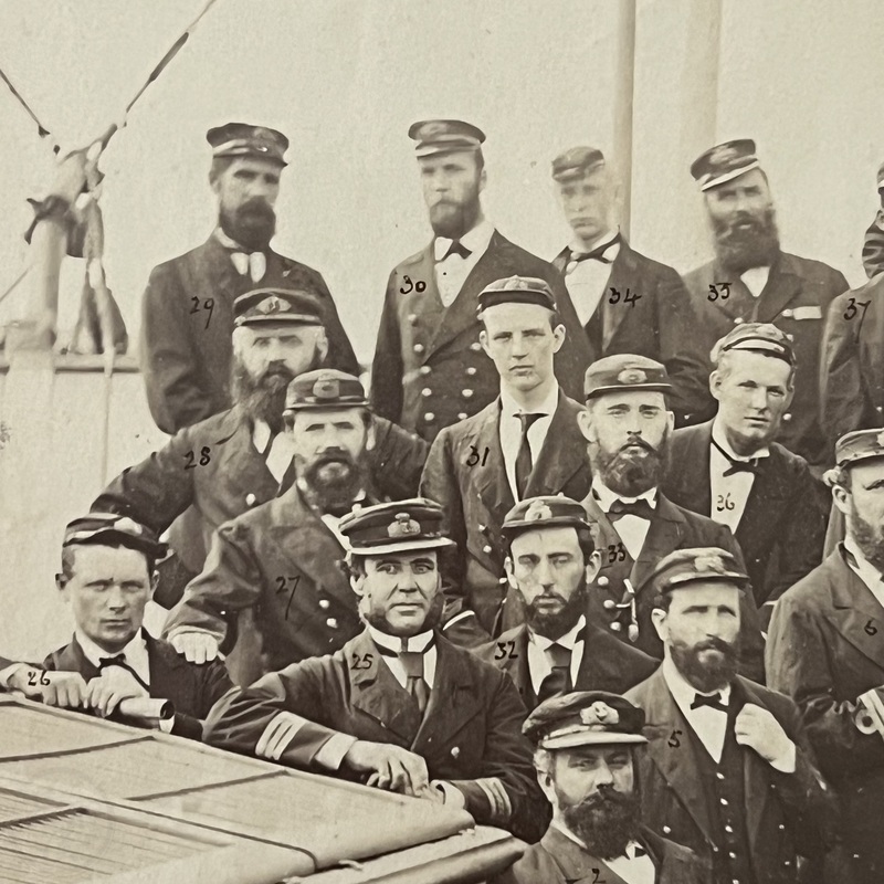 大形古写真 横浜におけるアイロン・デューク号 乗組員全員(日本人男性2名を含む)が特定された素晴らしい写真