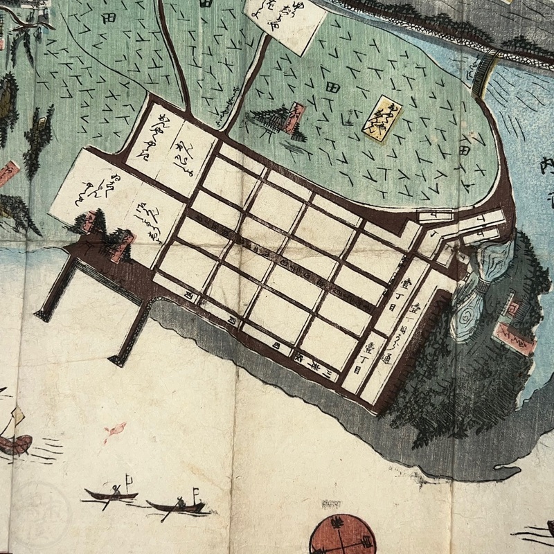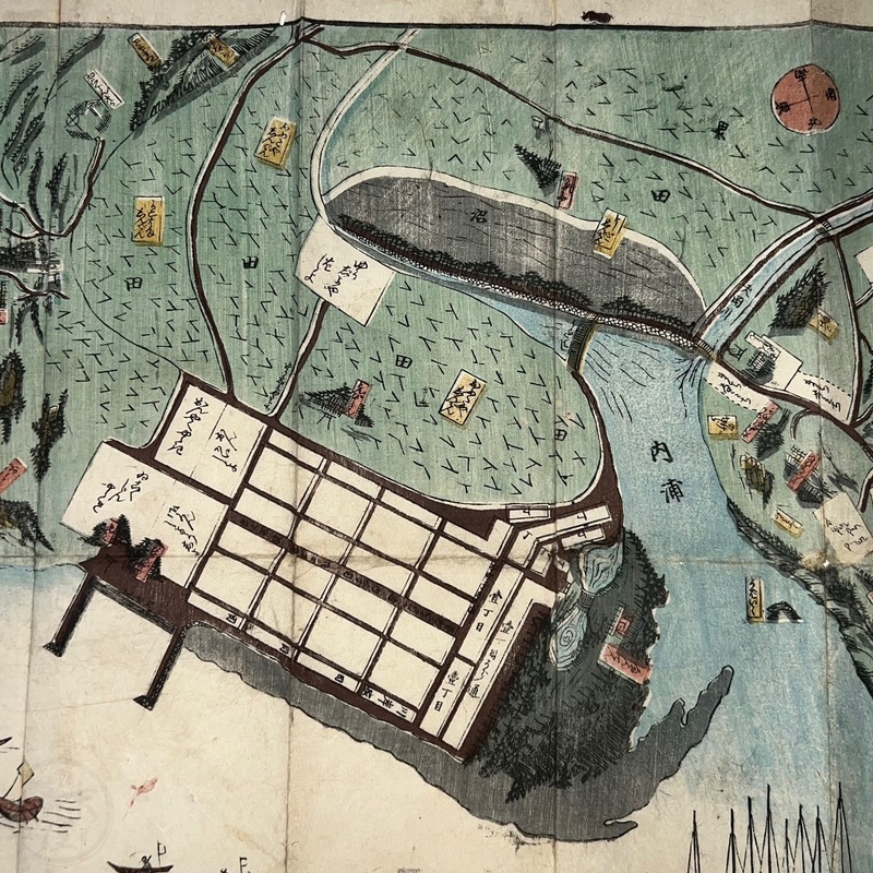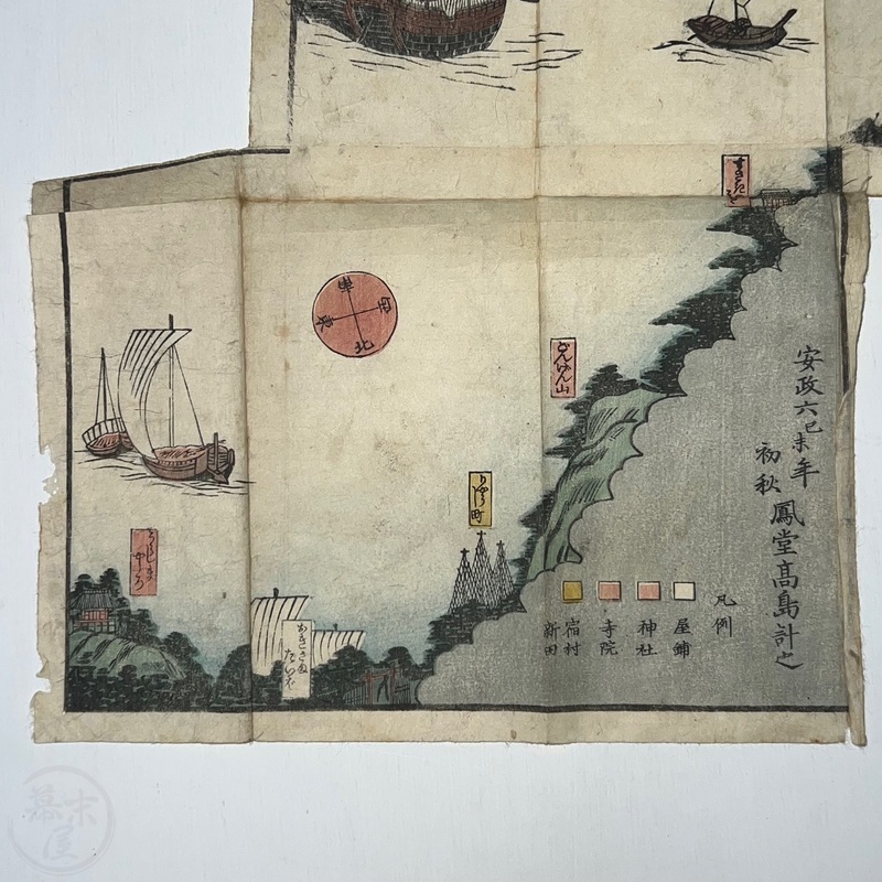 36.8 x 48.2糎。折りたたんだ時8.2 x 18.4糎。
