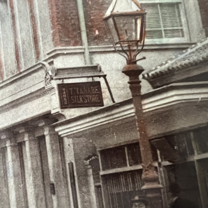 右側に「T. Tanabe, Silk Store」の看板が見えます。右下に「F6. YOKOHAMA MAIN STREE」が書いてある。