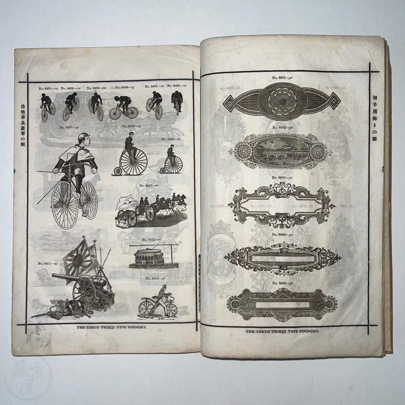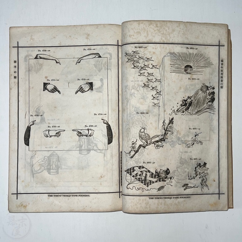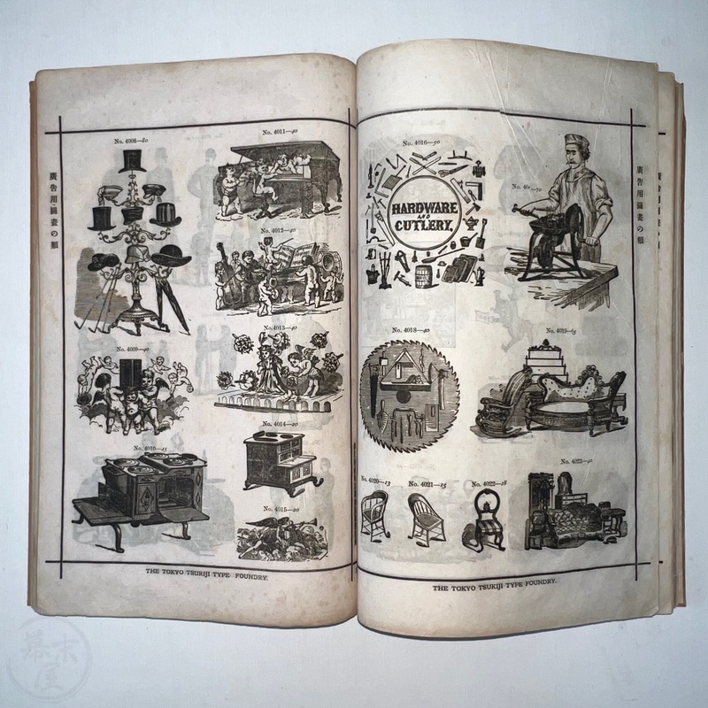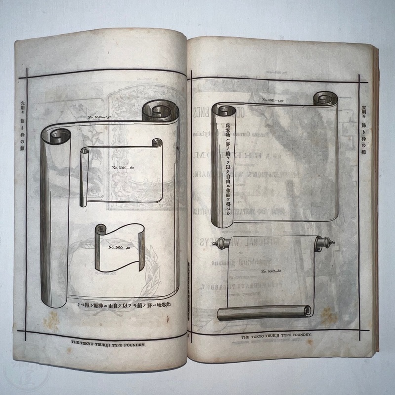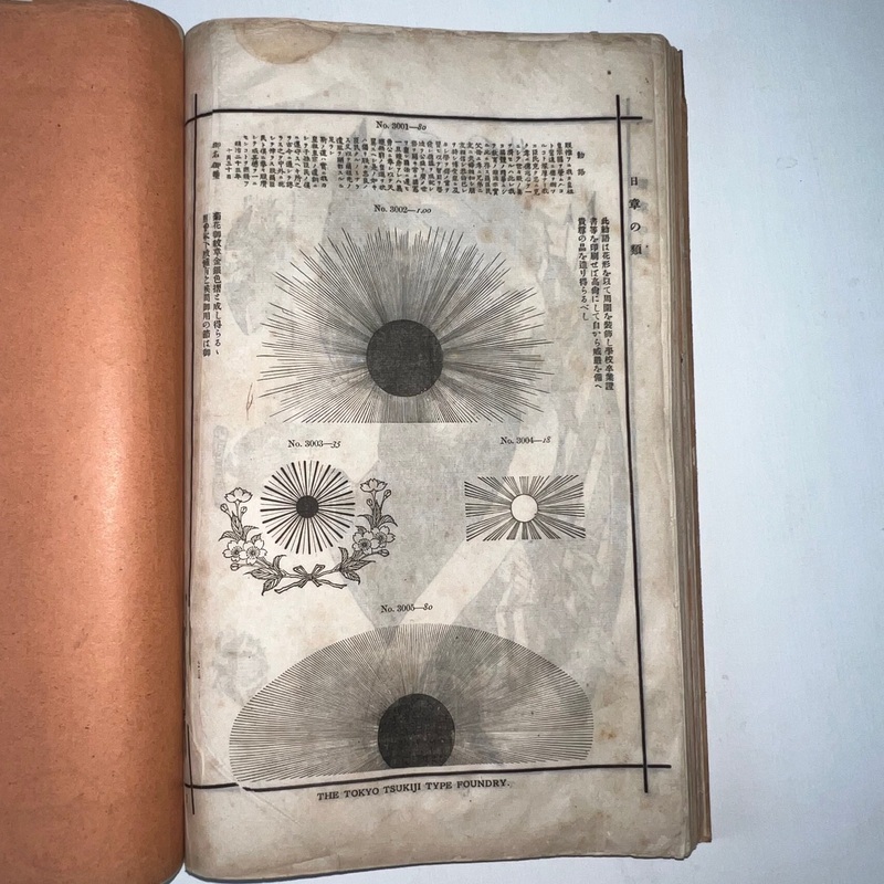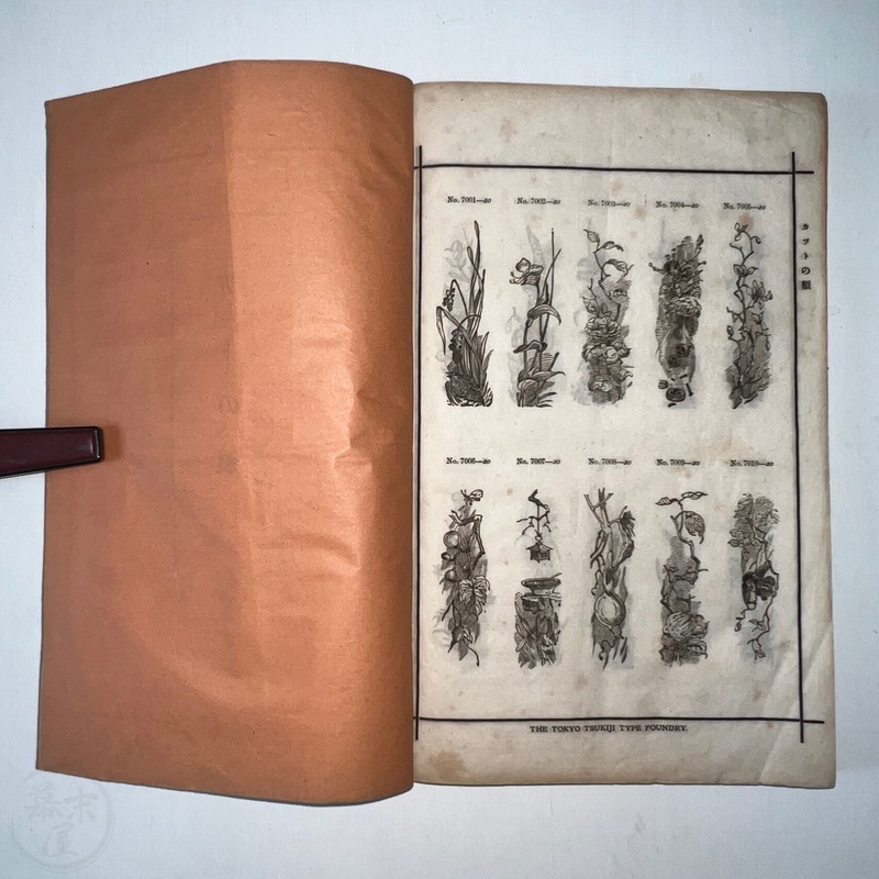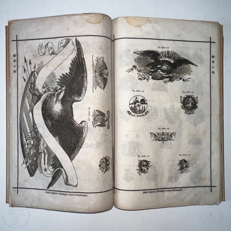 [Japan] Very scarce book of type samples by the Tokyo Tsukiji Type Foundry. Many of the Western business in Japan that needed to produce catalogues, brochures or flyers would have ordered designs from such a sample book.
