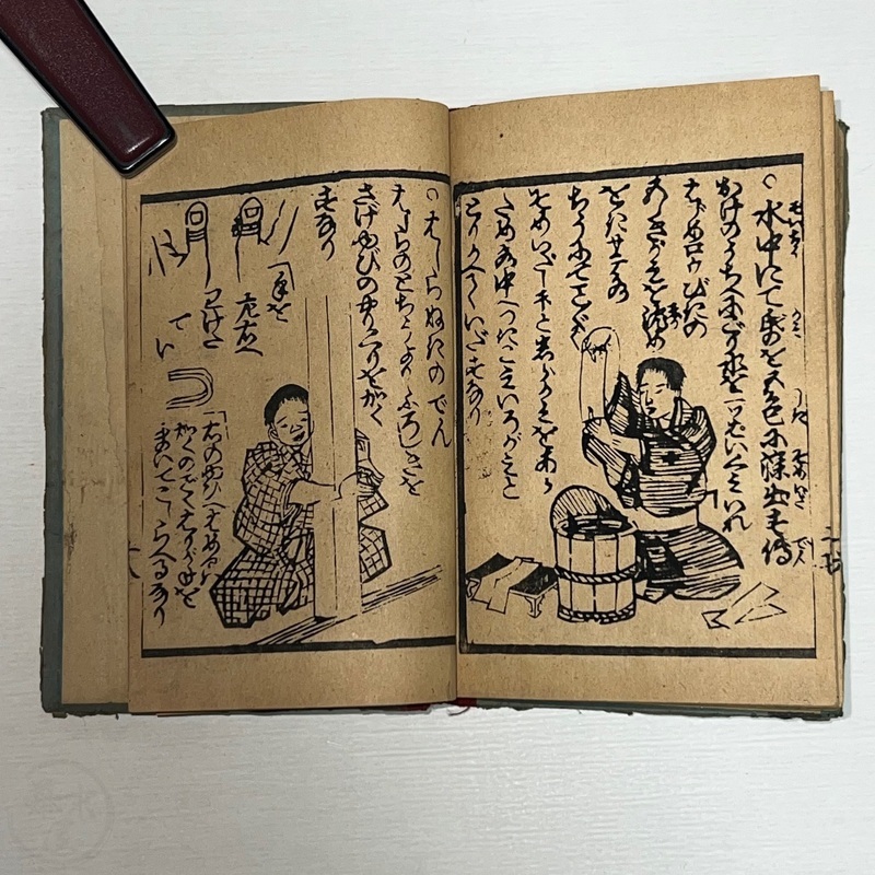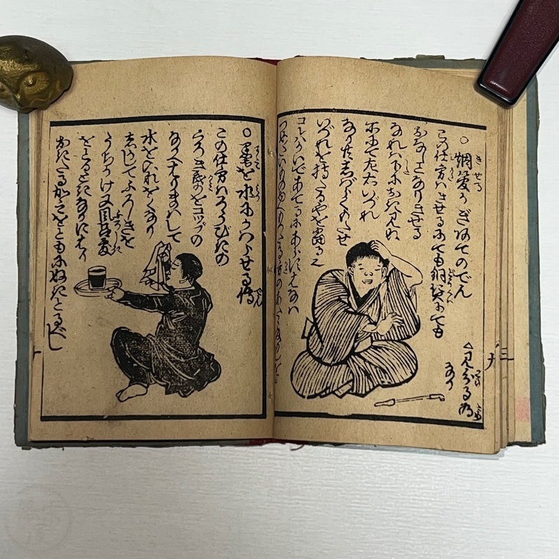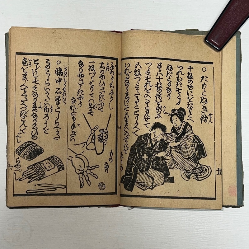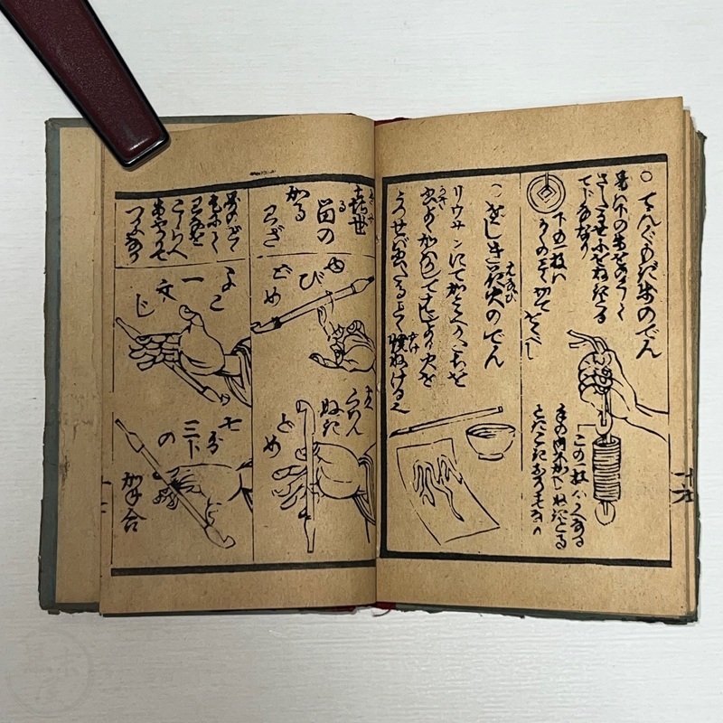 [Japan] Nice little book filled with various kinds of magic tricks from the West for Japanese people interested in magic to master. No title page (as issued?) and first illustration shows a man upside down with a fan.
