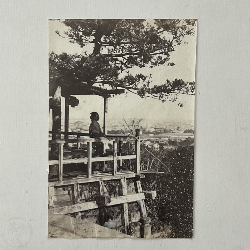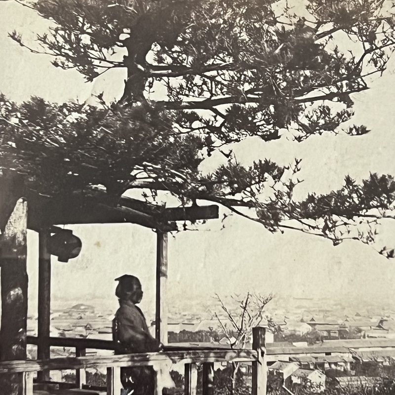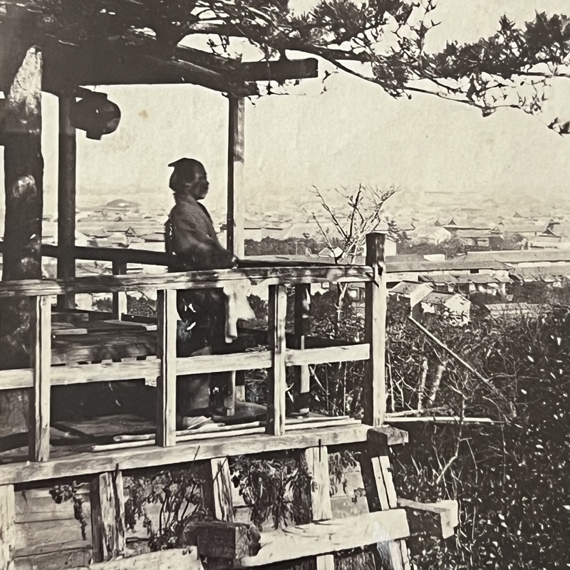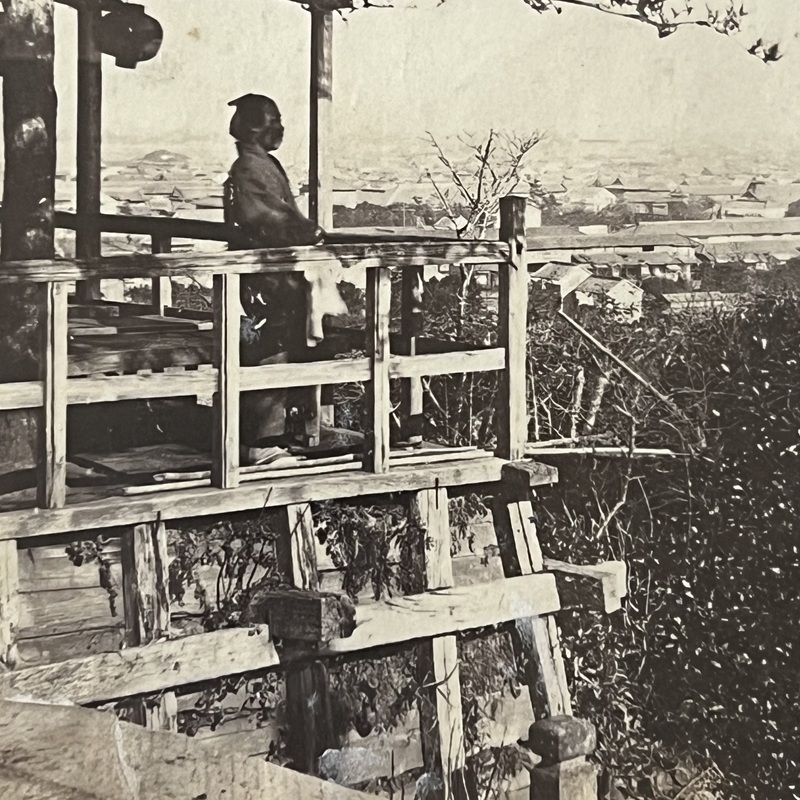 [Japan] A similar photo to this appeared in landscape format in the January 17, 1871 issue of The Far East. Presumably, the man with the topknot is an official who's job was to protect and also keep an eye on the photographer and entourage.