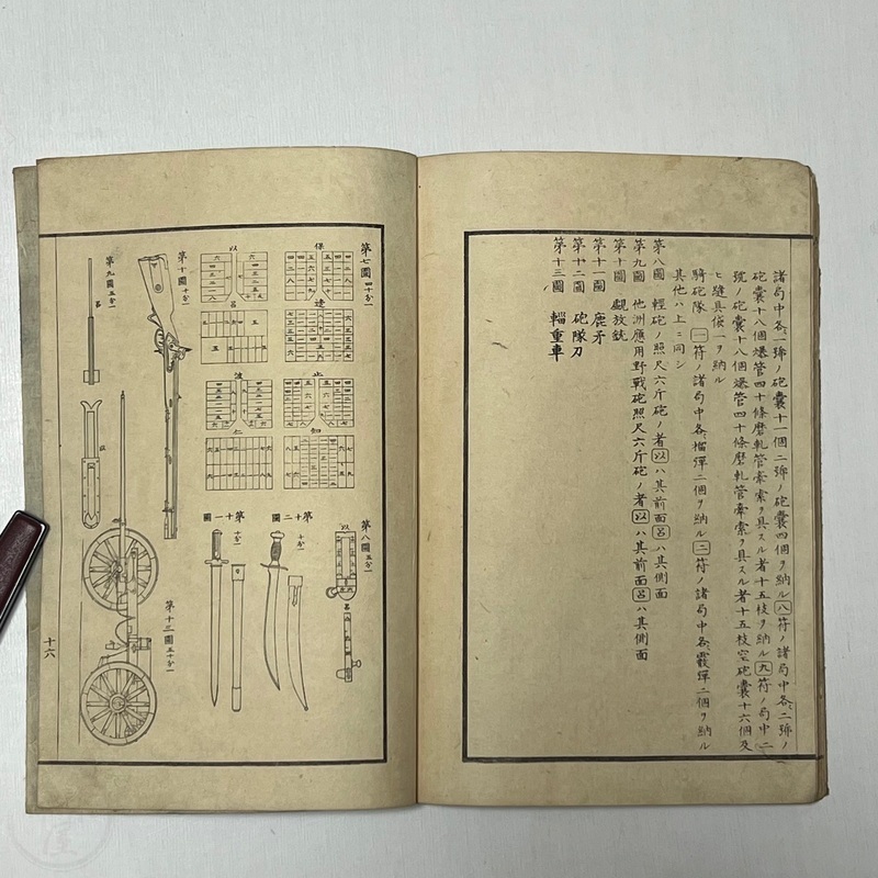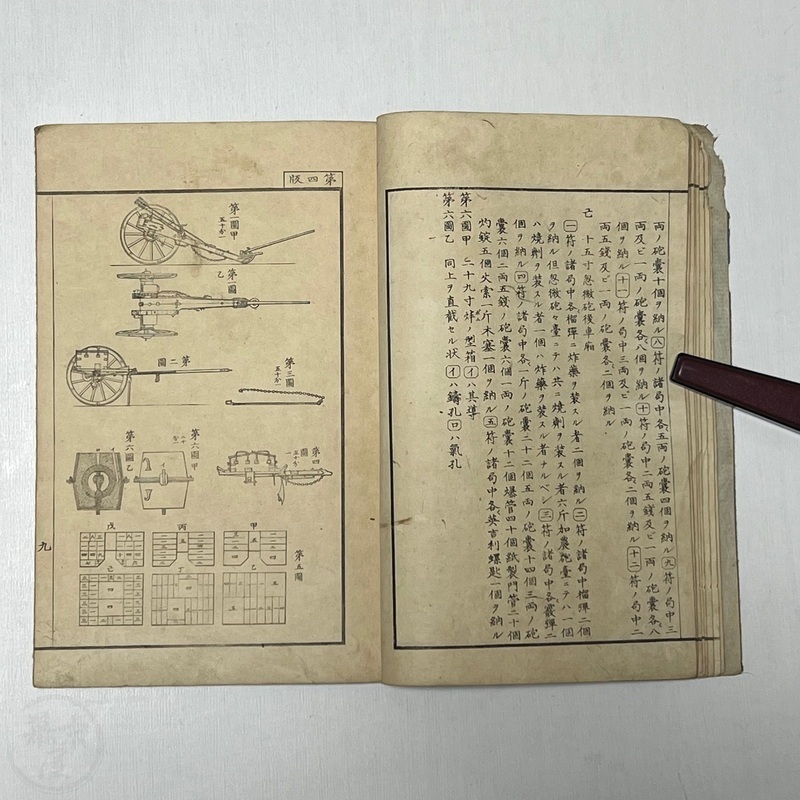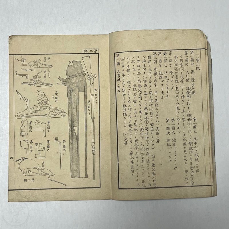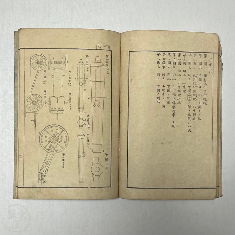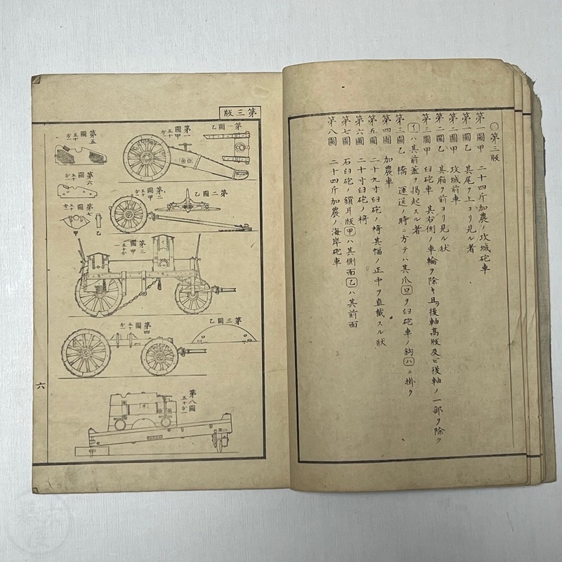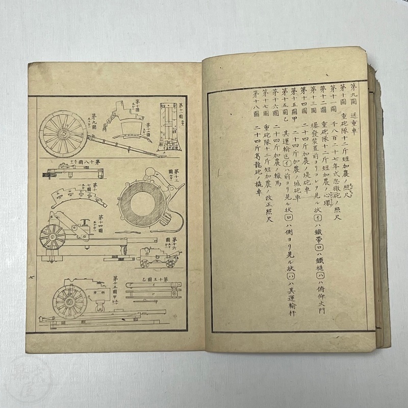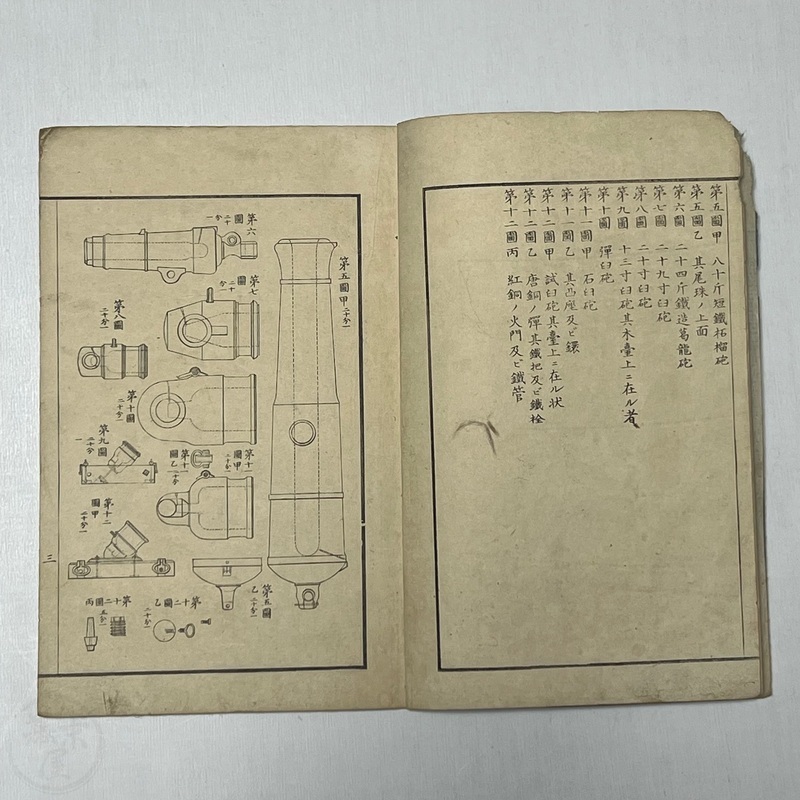 [Japan] Detailed, illustrated work that aimed to give the Japanese a good look at Western weapons including cannons (and vehicles used to move them), pistols, and cutlasses. Published the same year as Perry's first visit to Japan, this was probably based on Dutch armaments at the time.