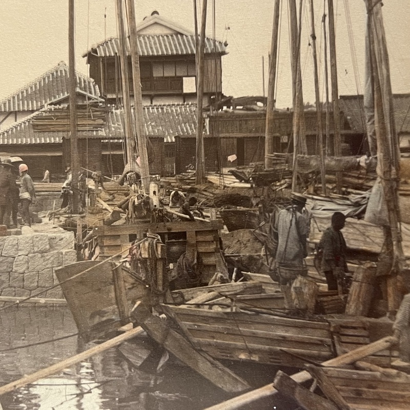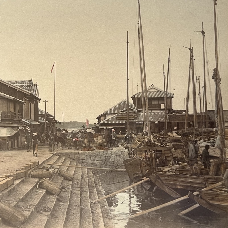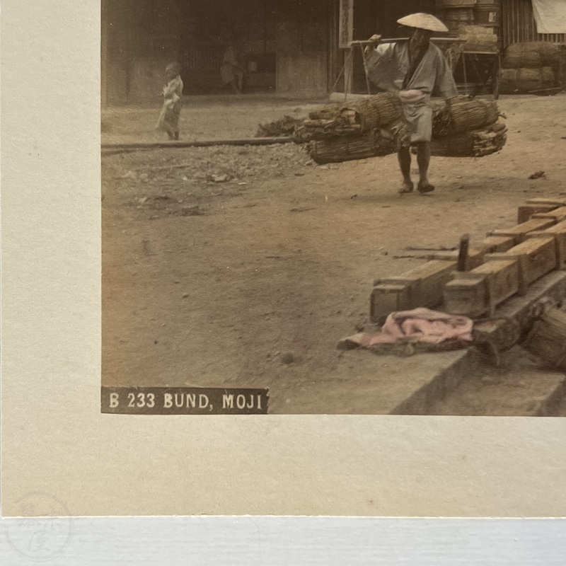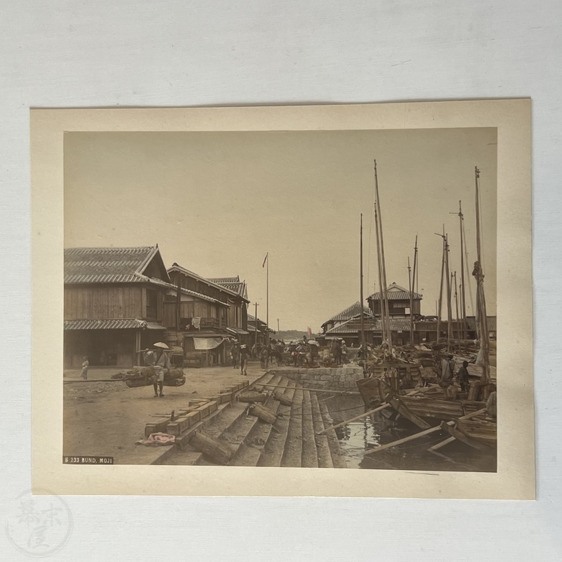 [Japan] Scarce photo showing part of the bund at the port of Moji near Nagasaki. Titled, 'B 233 BUND. MOJI' in neagtive at lower left. c1890.