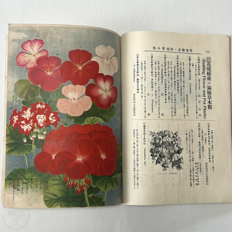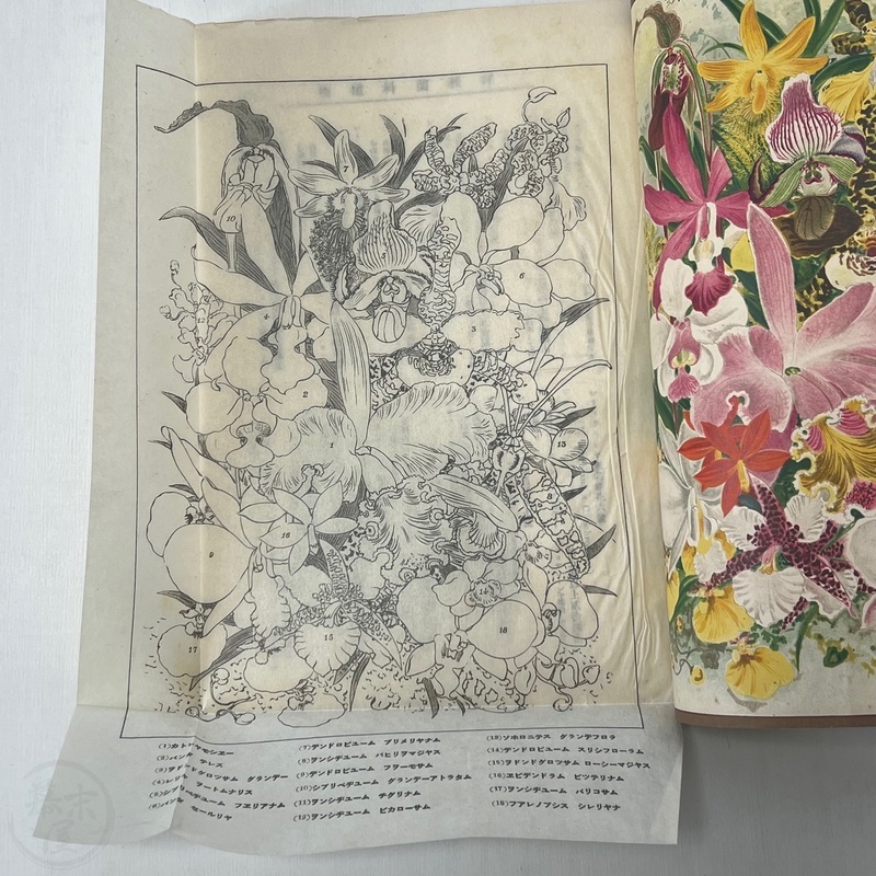 [Japan] The Yokohama Nursery Company produced some lovely catalogues and this one is no exception. The catalogue contains numerous photographic illustrations as well as three impressive chormolithographs of flowers available for purchase. The first one also has an illustrated fold-out page facing the chromolithograph to indicate the names of the flora featured.